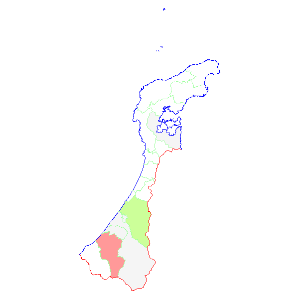 ■ 2018-03-25より2018-03-31までの石川県における市町村毎の報告地図