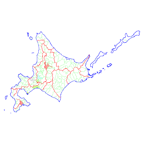 ■ 2018-12-17より2018-12-23までの北海道における市町村毎の報告地図