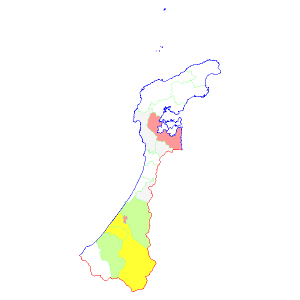 ■ 2018-12-22より2018-12-28までの石川県における市町村毎の報告地図