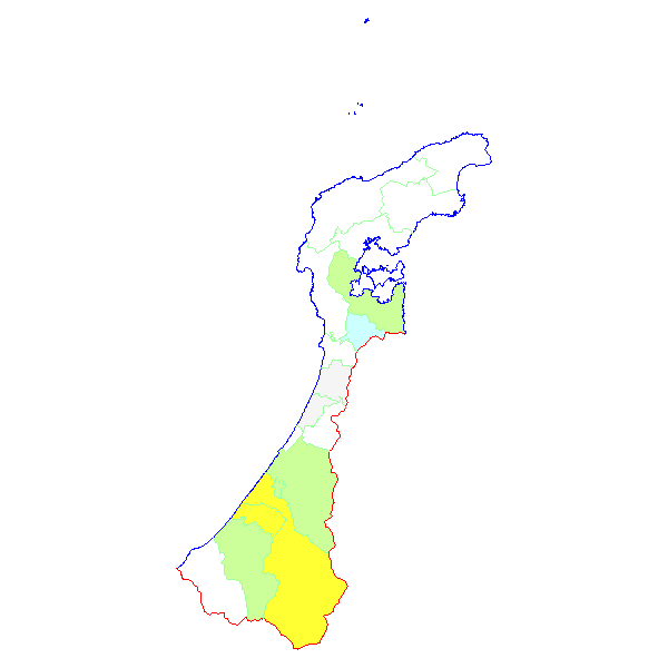 ■ 2018-12-31より2019-01-06までの石川県における市町村毎の報告地図