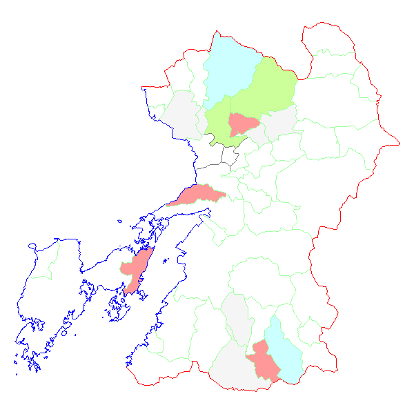 ■ 2019-01-13より2019-01-19までの熊本県における市町村毎の報告地図