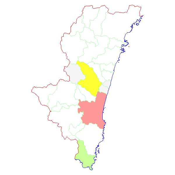 ■ 2019-01-14より2019-01-20までの宮崎県における市町村毎の報告地図