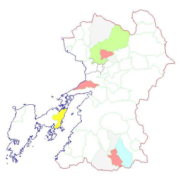 ■ 2019-01-19より2019-01-25までの熊本県における市町村毎の報告地図