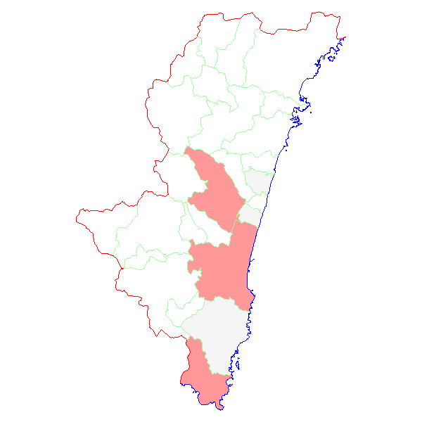 ■ 2019-01-27より2019-02-02までの宮崎県における市町村毎の報告地図