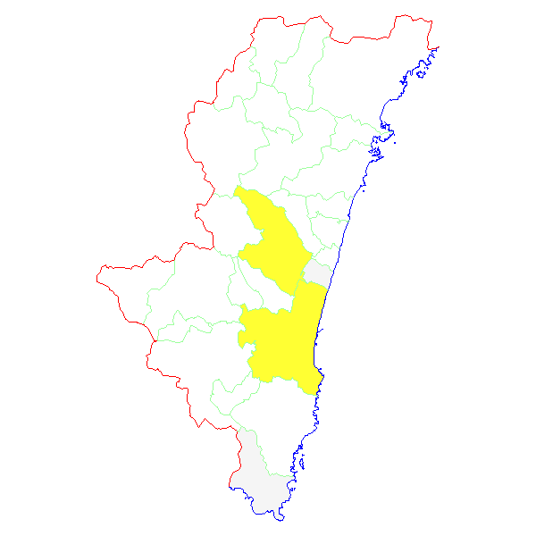 ■ 2019-02-10より2019-02-16までの宮崎県における市町村毎の報告地図