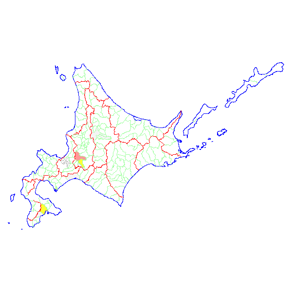 ■ 2019-03-03より2019-03-09までの北海道における市町村毎の報告地図