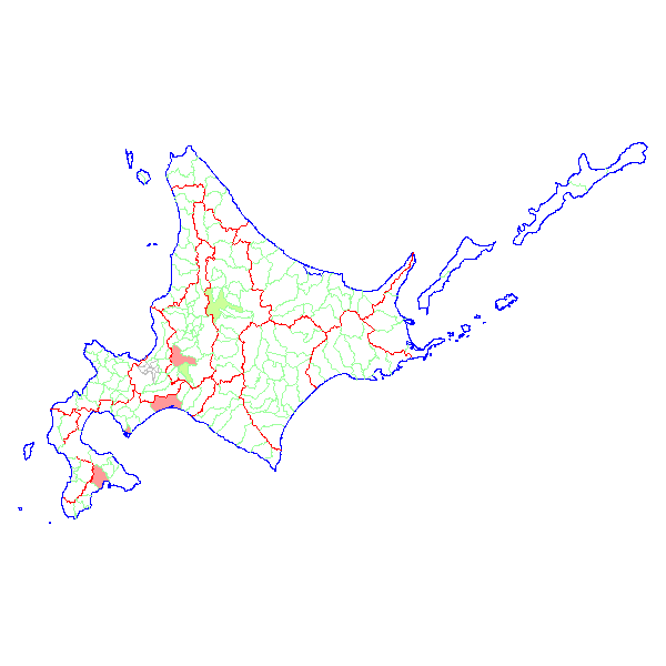 ■ 2020-02-17より2020-02-23までの北海道における市町村毎の報告地図