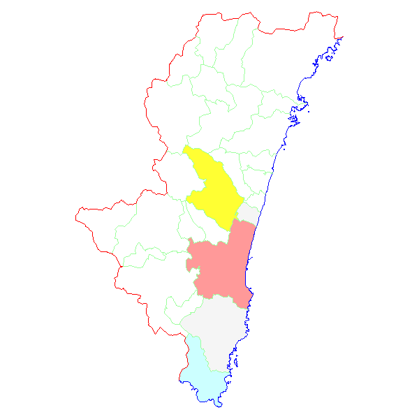■ 2023-01-07より2023-01-13までの宮崎県における市町村毎の報告地図