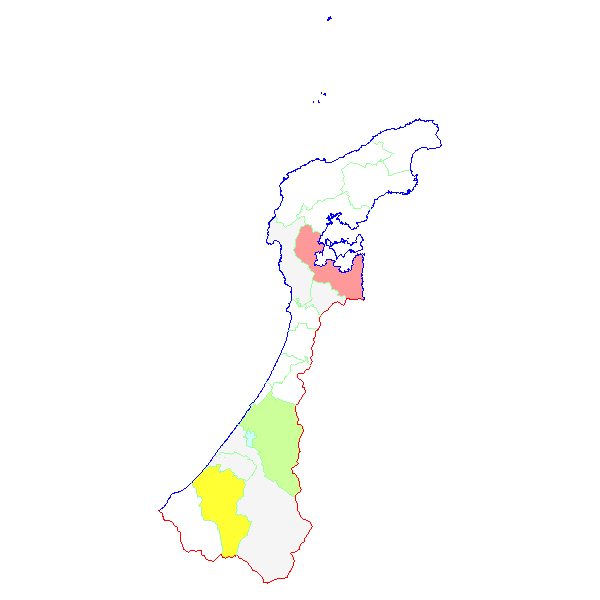 ■ 2023-03-12より2023-03-18までの石川県における市町村毎の報告地図