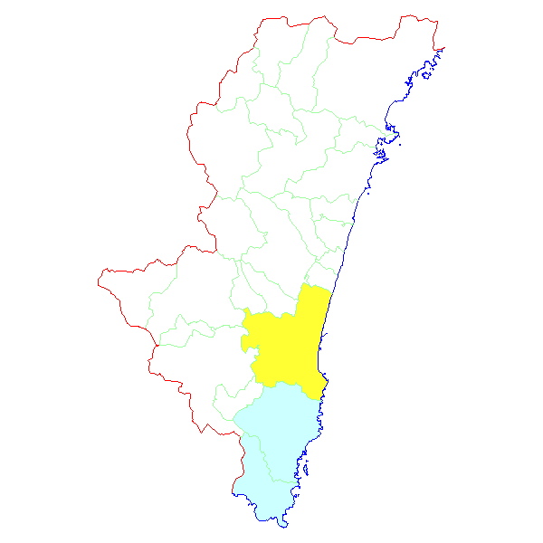■ 2023-09-16より2023-09-23までの宮崎県における市町村毎の報告地図