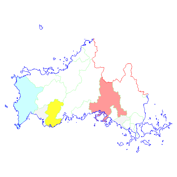 ■ 2023-10-02より2023-10-08までの山口県における市町村毎の報告地図