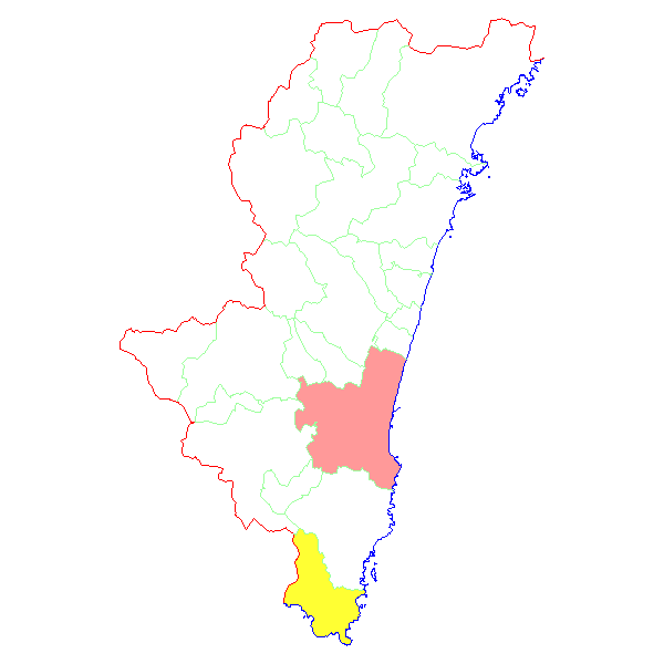 ■ 2023-11-11より2023-11-18までの宮崎県における市町村毎の報告地図