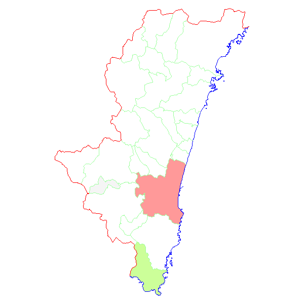 ■ 2023-11-18より2023-11-25までの宮崎県における市町村毎の報告地図