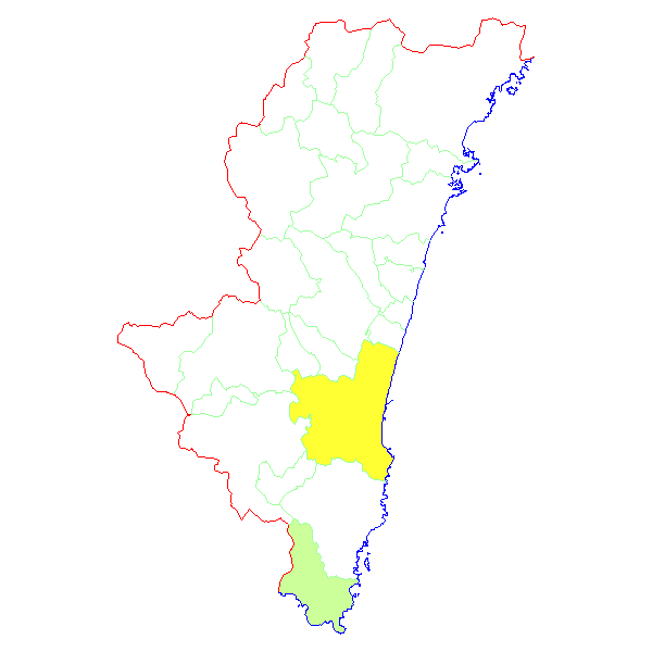 ■ 2024-03-18より2024-03-24までの宮崎県における市町村毎の報告地図